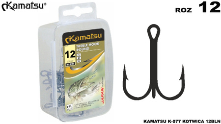 Kotwice Kamatsu rozm 12 Treble Hook Round K-077 Czarny Nikiel