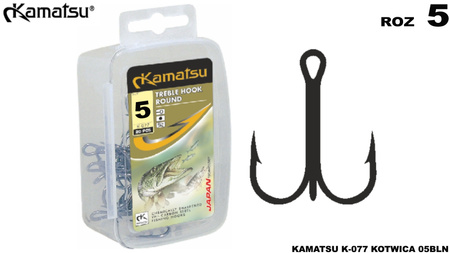 Kotwice Kamatsu rozm 5 Treble Hook Round K-077 Czarny Nikiel