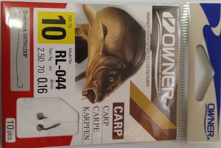 Haczyki z przyponami Owner. Profesjonalne zestawy haczyków z przyponami. Wykorzystano haczyki z naszej oferty i doskonałą żyłkę Owner Broad. W ofercie dwa rodzaje opakowania: „S” z przyponem 65 cm oraz „RL” z przyponem 70 cm.