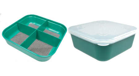 Pudełko stonfo wykonane z wysokiej jakości miękkiego plastiku,odporne na odkształcenia. Pokrywka dziurkowana ,idealne do przechowywania przynęt. Wielkość 0,7 l , pudełko jest podzielone na 4 równe przegrody dzięki temu można oddzielić od siebie różne przynęty jak również posiada w dnie siatkę co pozwala utrzymywać ochotkę w dobrej kondycji poprzez łatwą podmianę wody.